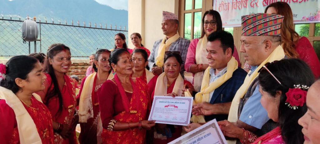 कार्यक्रमको क्रममा बेलकोटगढी निरञ्जना महिला सञ्जालद्वारा २०८० पौष १४ गतेदेखि २०८२ बैशाख २५ गतेसम्म सञ्चालित नीति पञ्चैबाज सिप विकास तालिममा सक्रियतापूर्वक भाग लिएको सहभागिहरूलाई प्रमाणपत्र पनि हस्तान्तरण गरिएको थियो।