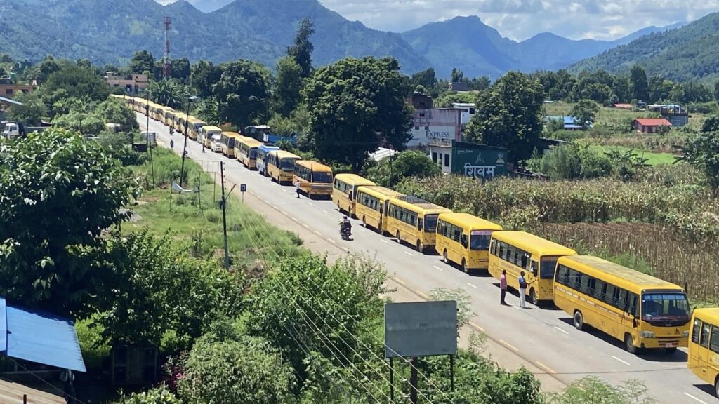 सरकारले ल्याउन लागेको विद्यालय शिक्षा विधेयकमा आफ्ना माग पूरा गराउन नुवाकोट प्याब्सनले नुवाकोटमा आयोजना गरेको बस र्याली , तस्बिर,रामराजा कुमाल,विदुर प्याब्सन